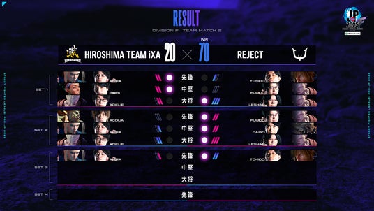 そして「LeShar選手」の勝利を皮切りに、2巡目は「REJECT」が連勝を重ねる。さらに大将戦で再び行われた「LeShar選手」対「あでりい選手」の一戦も「LeShar選手」がフルセットフルラウンドの熱戦を制し大幅リードした。