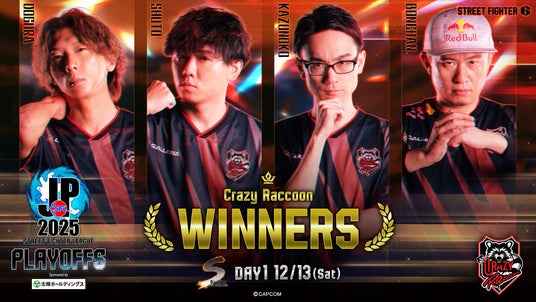 「ストリートファイターリーグ: Pro-JP 2025 プレイオフ Day1」は「Crazy Raccoon」が勝利、来年1月31日(土)に開催される、「グランドファイナル」への進出権を獲得しました。