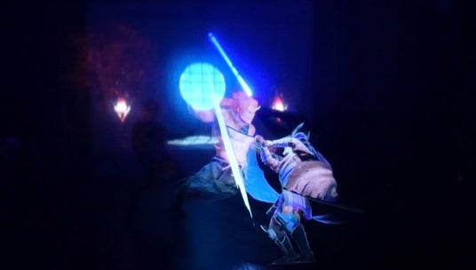 舞台上でモーキャプアクターがアクションを開始すると、その動きがリアルタイムで3DCGのキャラクターに反映され、AR技術で映し出される。空間に浮かぶ、3DCGキャラクターとモーキャプアクターが戦う際には、エフェクトや音響もリアルタイムで入り、その仕組みに驚かされるショーは迫力満点。日本独自のアクションを取り入れた構成となっている。普段、CGムービーでは見ることのない、モーションキャプチャー開始・終了時に必ず行われるTポーズが見られるなど、コミカルな要素もあり、客席は笑いにも包まれた。