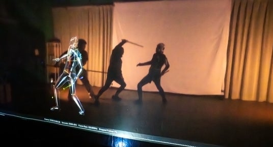 公開イベントは、モーションキャプチャー収録が行われている現場を見学する形で始まり、モーキャプアクターは、ディレクターのオーダーに対応して、その場でアクション、殺陣を組み立てていく。ライブ感を持って、スタッフと一緒に台座を押さえるなどの観客参加型で、その場でアクションシーンが出来上がっていく様子、難易度の高いパフォーマンスが見られると、客席からは歓声が上がった。実際の現場でも、モーキャプアクターはディレクターと会話を重ねつつシーンを作り上げていくが、それをショーとして公開する手法だ。