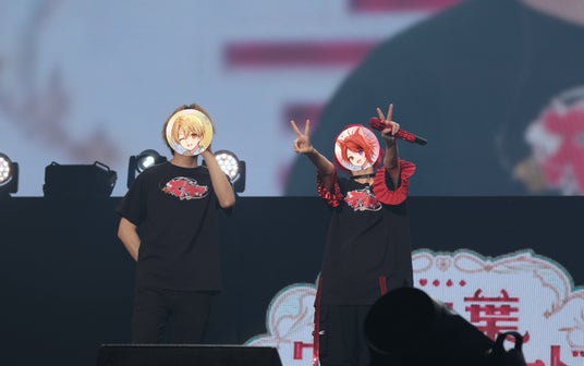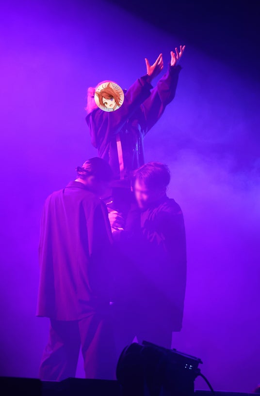 ここでオーディエンスの目線は再びスクリーンへと移り、赤い鳥が山々を抜けたどり着いたのは、カラフルな不思議の森という新たな舞台。映像とライブを巧みに行き来する演出は、まさに2.5次元のワンダーランドにいるかのよう。ダンサーと横一線となり歌い踊った光景も壮観な「ないことば」や、チェアのキャスターを駆使し縦横無尽に動き回った「へんしん!」、キッチンをモチーフにファニーなダンスを披露した「わんぬ」と、次々と見せ場が変わる構成もお見事で、「ヒロイン(ハート)キラー」や「ヨンダラン!」ではアリーナからスタンドまで手を振り、リスナーを歓喜させる莉犬。