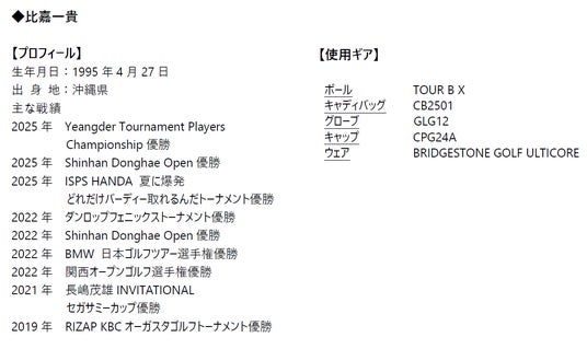 今シーズンは国内ツアー1勝に加え、アジアンツアーでも2勝をあげ、国内外通算9勝とし、12月10日~13日に、Dirab Golf & Country Club(サウジアラビア)で行われたアジアンツアー今季最終戦「Saudi Open presented by PIF」を7位で終え、同ツアーの年間王者に輝きました。また、2022年には日本ツアーの賞金王にも就いており、両ツアーで1位を獲得した初の日本選手となりました。なお、このタイトル獲得により、2026年度のメジャー大会「全米プロゴルフ選手権」「全英オープン」への出場資格も獲得しています。