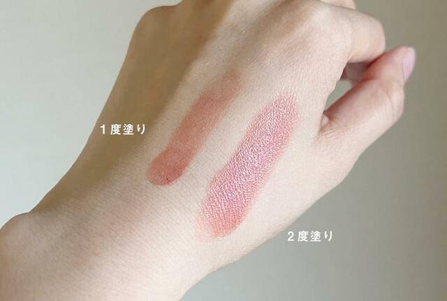 肌に伸ばすと、まさに「血色」カラー。塗り重ねる回数で濃さを調整できますよ。
