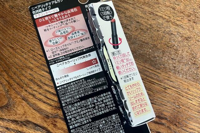 次に紹介するのはニベアの「リッチケア&カラーリップ 色持続タイプ」。