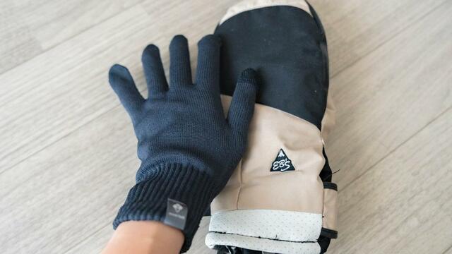 そこでこのアイテムをインナーグローブにして、スノーボード用のミトングローブを着用してみました。分厚すぎない生地ということもあり、ごわつかず快適な着心地に大満足。