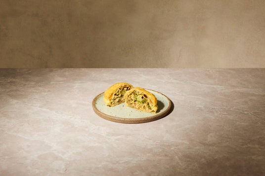 冬から春へと移ろう季節にぴったりな、まろやかでコクのある味わいを楽しめるミートパイが登場です。国産ポークを香ばしく焼き上げ、白ワインと香味野菜、ドライトマトやオレガノなどのスパイスでじっくり18時間煮込んだ特製のプルドポークを使用しています。時間をかけて丁寧に仕上げることで、ポークはほろほろに柔らかく、旨味がぎゅっと凝縮された深い味わいが特徴です。そこにオリーブオイルと共に丁寧にローストしたブロッコリーとインゲンを合わせました。すべての具材を、クリーミーなホワイトソースとコク深いゴーダチーズで包み、アクセントに添えたドライバジルが爽やかに香ります。