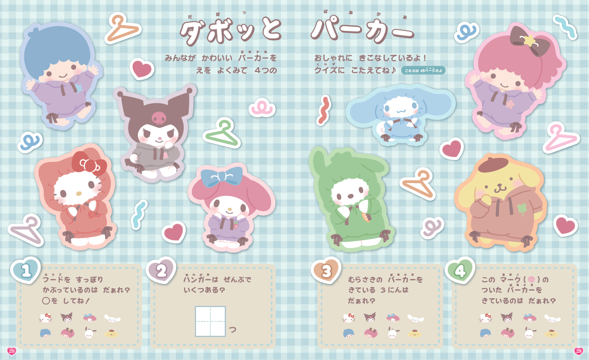 本誌は、シール遊びや、ぬりえ、さがしえ、めいろ、ドリル、おはなし、クイズ、まちがいさがしなどをつかって、サンリオキャラクターズとたのしくあそびながら子どもの考える力を育てます。