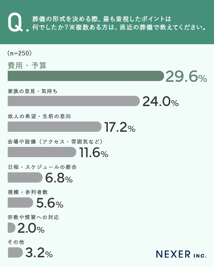 さらに、葬儀の形式を決めた際に重視したポイントを聞いてみました。