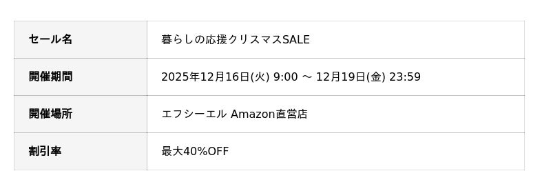 車・バイク用カスタムパーツ専門店エフシーエル(fcl.)を展開する株式会社WiNEEDS HOLDINGS(所在地:広島市南区、代表取締役社長:尾田 雅史)は、2025年12月16日(火)よりAmazon直営店にて「暮らしの応援クリスマスSALE」を開始します。