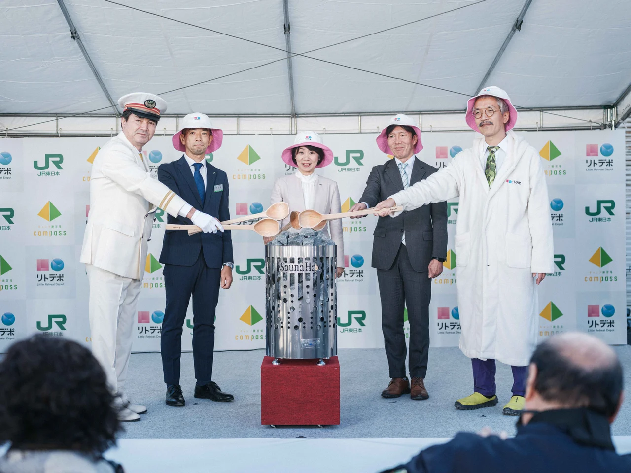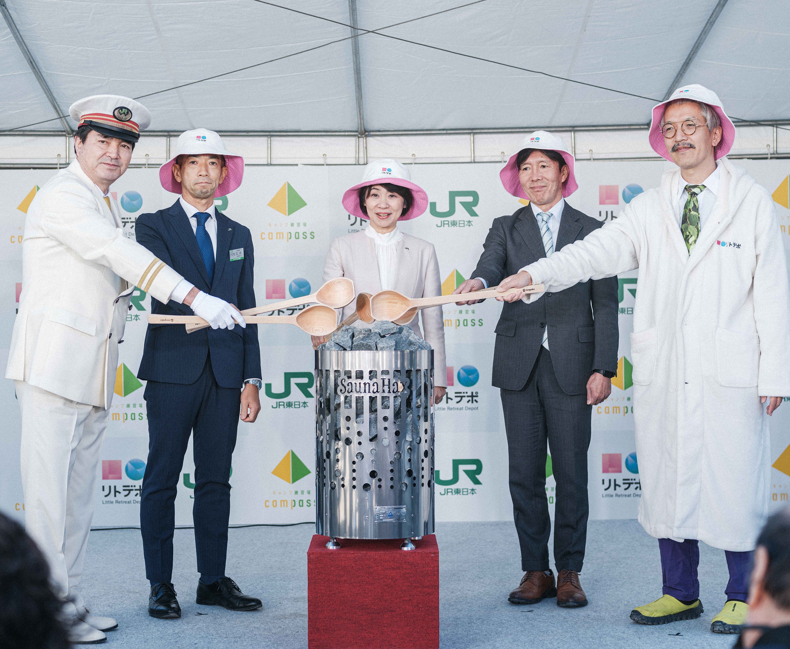 まずは JR東日本のキーパーソンと共に、サウナの起動儀式である 「オープニングロウリュ」 を実施。