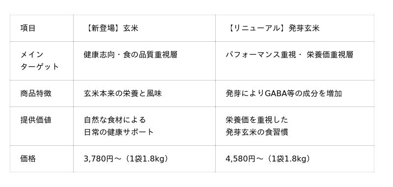健康志向の多様化とともに、「機能性を重視したい」「自然な食材を日常に取り入れたい」など、お客様のニーズも幅広くなってきました。今回のリニューアルでは、これらの多様な声にお応えするため、商品ラインナップ拡充と「美味しさ」に特化した情報発信強化により、玄米の新たな可能性を切り拓いてまいります。
