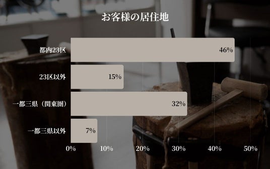 ご来店されたお客様の居住地を分析すると、「都内23区」が46%と最も多く、「23区以外」(15%)を合わせると、都内からのご来店が全体の6割以上(61%)を占める結果となりました。これは、代官山というロケーションの持つブランド力と、都心に住む感度の高いカップル層に対する高い訴求力がうかがえます。