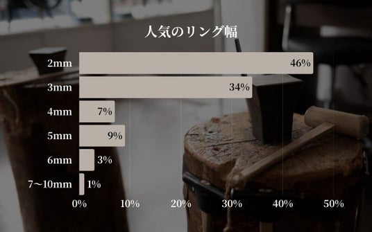 全体の8割が「2mm」(46%)または「3mm」(34%)を選択しており、繊細で指馴染みの良いデザインが圧倒的な主流となっています。