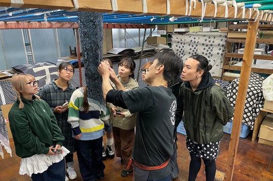 本プロジェクトは、きものが受け継いできた「物質的な循環」と「物語の継承」の二つの価値に着目し、伝統を尊重しながら現代のライフスタイルへつなぐ“未来のきもの”の姿を探るものです。武蔵野美術大学の学生20名が4グループに分かれ、新しいデザイン提案、素材研究、空間・体験設計など、多角的なアプローチによるプロトタイプ制作を行いました。