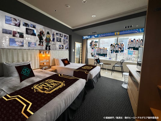 “ヒーローたちの成長の軌跡を体感する”をコンセプトにしたコラボレーション企画 「HOTEL PLUS ULTRA」 を実施します。 『僕のヒーローアカデミア』 のキーワードでもある “更に向こうへ!PLUS ULTRA” から着想した演出で、ホテル滞在を通じてキャラクターたちと自分らしく豊かな時間を過ごしていただきたいという想いを込めて構想したコンセプトルームをはじめ、ホテル内のカフェ、フレンチレストラン、和食レストランでのコラボメニューの販売も展開します。ご宿泊特典グッズやコラボメニュー特典、ご宿泊者のみ購入可能なお土産グッズもご用意します。