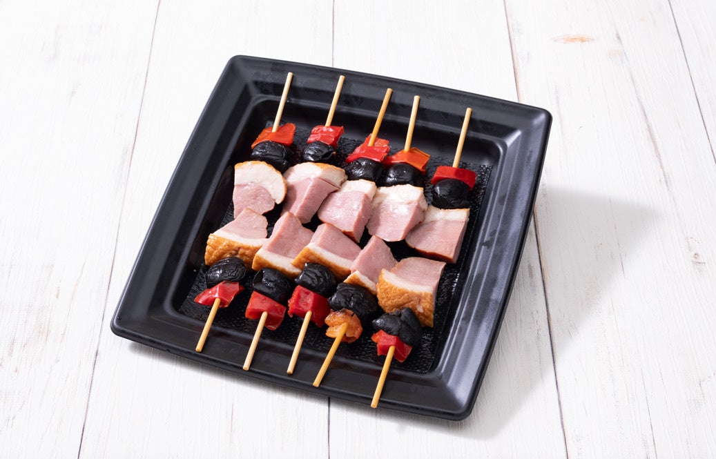 合鴨スモークとオリーブと赤ピーマンのピンチョス