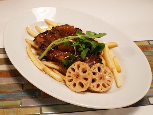 能登豚肩ロース ポークジンジャー能登の大地が育んだ希少な能登豚の肩ロースに、生姜のスパイシーさと洋梨のコンフィチュールを添えることで、豚の旨味と調和しお酒にもよく合います。