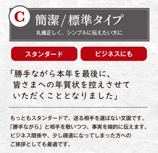 Cタイプ:【簡潔・標準】 礼儀正しく、シンプルに伝えたい方に