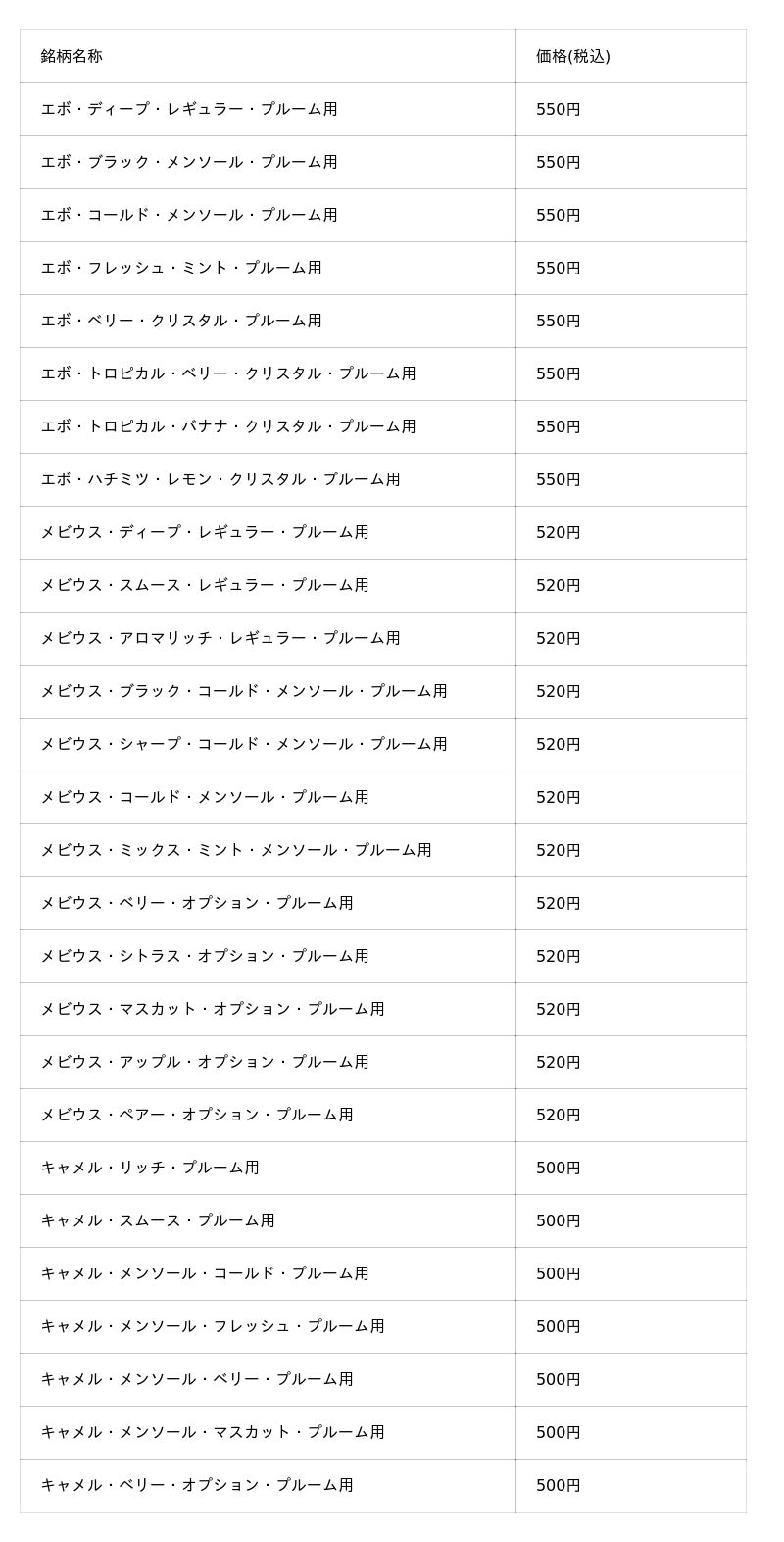 「Ploom」でお愉しみいただけるたばこスティックは、お客様の好みに合わせ27銘柄のラインアップよりお選びいただけます。