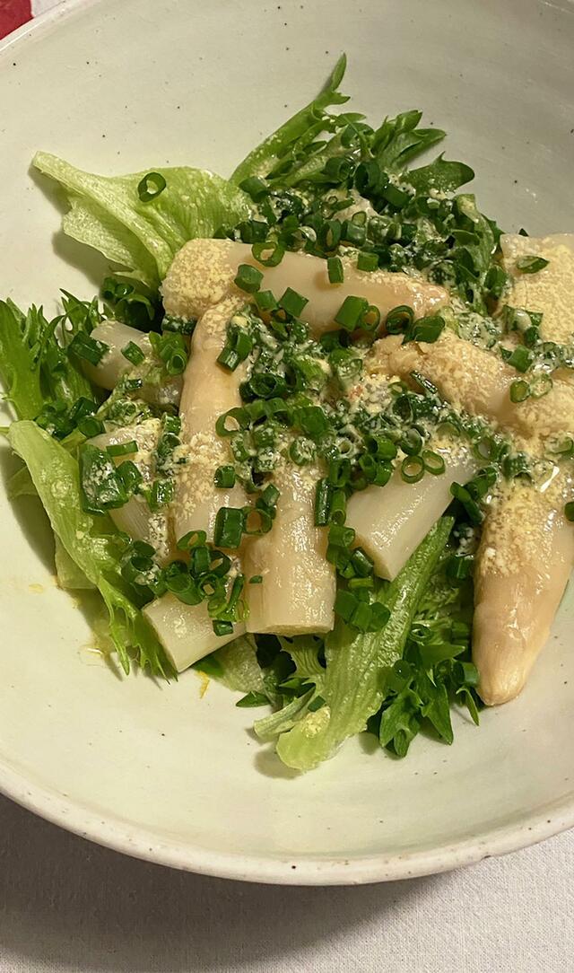 フリルレタスとホワイトアスパラガス、