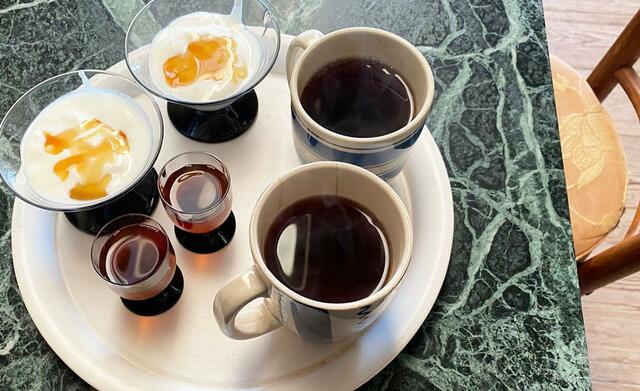 紅茶(牛乳がない!)、今日の元気、カスピ海ヨーグルトをタネに作ったヨーグルト+庭の夏みかんで作ったマーマレード(ふたつ共にTORU作)。