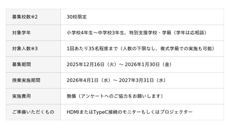 ※2 応募多数の場合、本活動の趣旨を踏まえ、よりロボットと接する機会が少ないと推察される学校を優先することがありますので、ご了承ください。