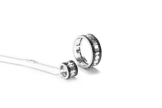 今回、新作が加わり、ブラックの“ダークエナジー”によってその存在感がさらに際立ちます。ブラックダイヤモンドで飾られたリング、ネックレスは、ホワイトゴールドとの鮮やかなコントラストを描き、明確なスタイルの境界を超えた磁気的なエレガンスを放ちます。モダンでエレガントなスタイルをお楽しみいただけるデザインで、真に印象的な新しいバリエーションは、その完璧な美しさによって力強さを呼び起こし、メゾンの歴史、クラフツマンシップ、情熱、そして創造性が息づくジュエリーです。