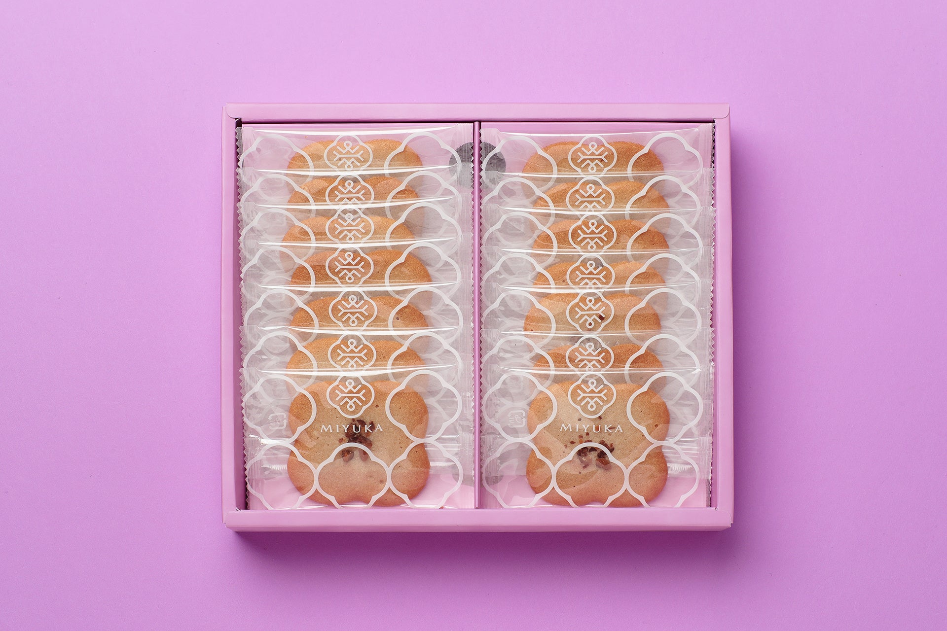 米粉を加え、花のようにひらりと軽い食感に仕上げたあずきのラングドシャは、MIYUKAのロゴをかたどった愛らしい花形が特長です。あずきのやさしい風味が広がる「花紫」は、皆で分けやすい、東京土産にも最適な14枚入りとなっています。MIYUKA グランスタ東京店、MIYUKA エキュート秋葉原店の2店舗限定で販売します。