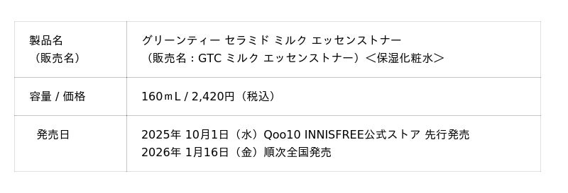 アモーレパシフィックジャパン株式会社(本社:東京都渋谷区)が展開する、自然主義アクティブスキンケアブランド [INNISFREE | イニスフリー] は、『グリーンティー セラミド ミルク エッセンストナー』を美容液と併用することで、肌効果が高まることを使用試験により確認しました。