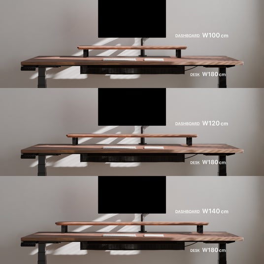 幅180cmのDESK (METRO DARK) と幅140cmのDASHBOARD (Matte Black) の組み合わせ