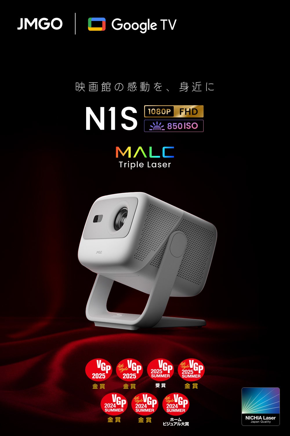 N1S 4K4K高解像度と美しい発色・コスパを両立した、3色RGBレーザー光源搭載モデル。VGP2026にて映像音響部会 金賞を受賞。