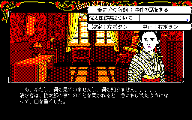 推理アドベンチャーの醍醐味として推理がありますが、本作には多くの人物が登場し、複雑な人間関係などを整理しながら手がかりを探していく面白さは、ならではのものといえるでしょう。 セピア調に彩られた大正ロマンの世界を舞台に、あなたは推理を働かせて難事件の解決に乗り出します。次々と発生する殺人事件の真犯人は? そして、その動機はいったい何なのでしょうか。