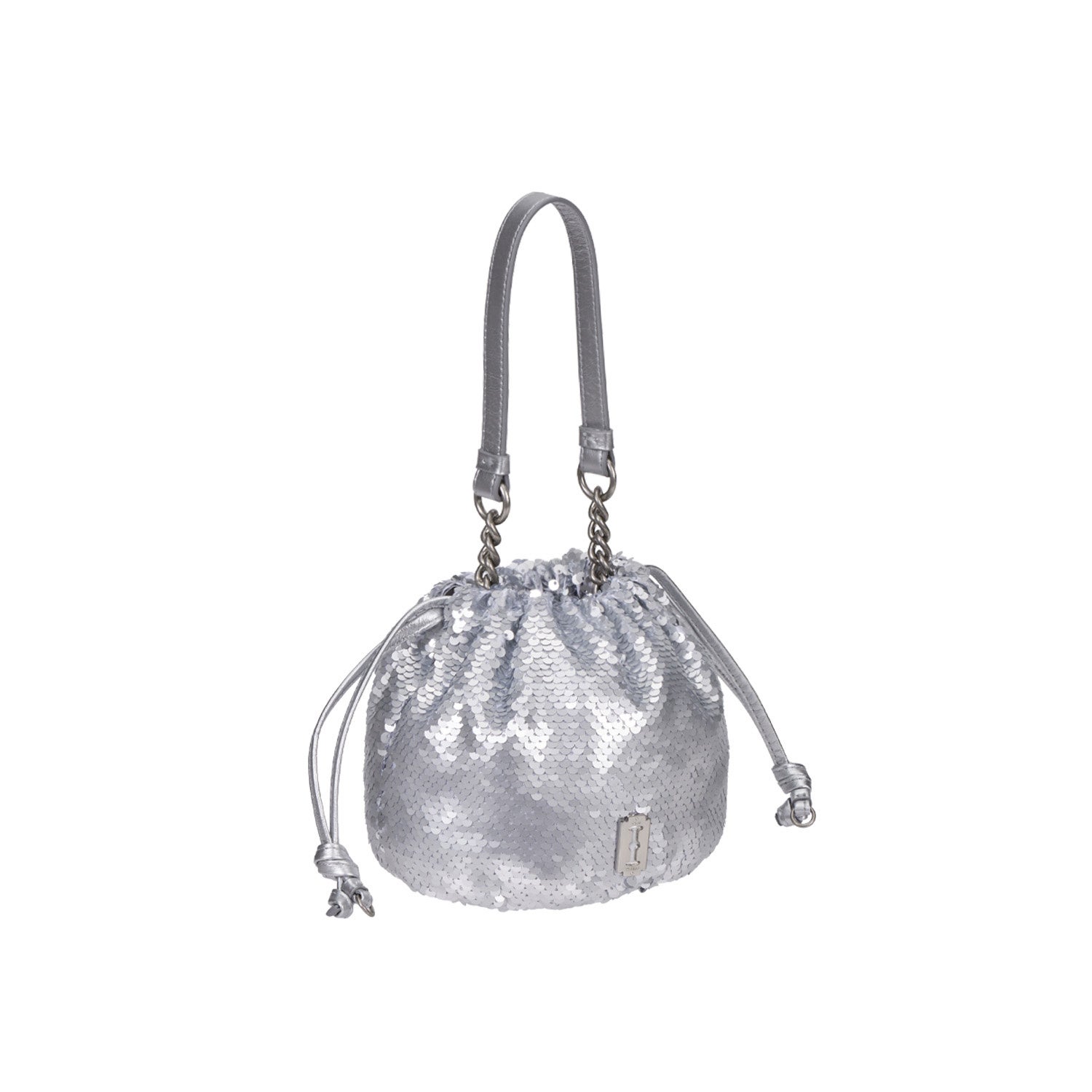 Spangle Pouch特別なシーンのアクセントとして提案する、スパンコール素材のラウンド型ポーチ。チェーンハンドルが存在感を添え、トップはスナップ付きのダブルクロージャー仕様で安心感を高めています。〈カラー展開:全2色〉