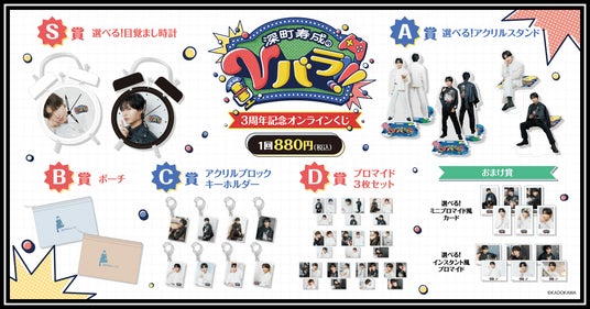 株式会社KADOKAWA(本社:東京都千代田区、取締役 代表執行役社長 CEO:夏野 剛、以下 KADOKAWA)は、運営するオンラインくじサービス「くじ引き堂」において、ニコニコチャンネル「深町寿成のVバラ!!!」の豪華賞品が手に入る<深町寿成のVバラ!!!3周年記念オンラインくじ>を、2025年12月23日(火)12時より販売します。