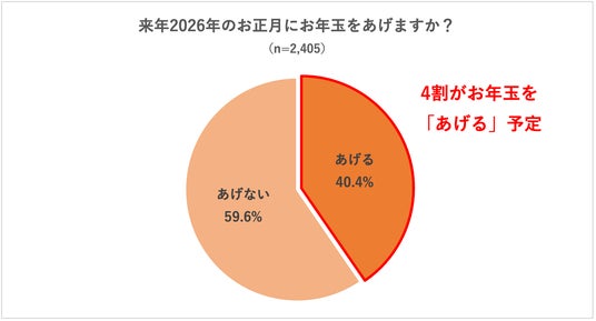 2.来年2026年のお正月は40.4%がお年玉をあげる予定。
