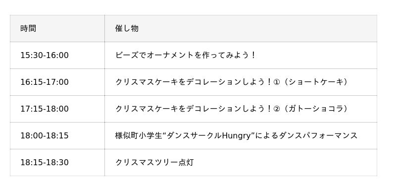 クリスマスケーキワークショップ(参加費1,300円)は有料です。