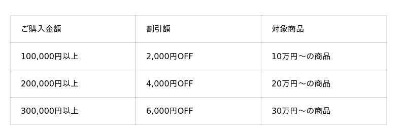 購入金額に応じて2,000円・4,000円・6,000円の3種類のクーポンを配布