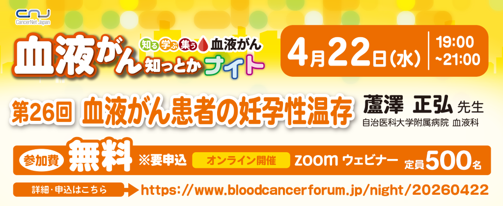 【第26回】血液がん知っとかナイト「血液がん患者の妊孕性温存」開催のご案内 -