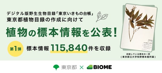 株式会社バイオーム(以下、バイオーム)は、東京都との協定のもとネイチャーポジティブの実現に向けて、都内の野生生物情報が一目でわかるデジタル版野生生物目録「東京いきもの台帳」の作成を進めています。このたび、東京の植物相の解明に向けた第一歩として、植物の標本情報115,840件を本日2025年12月16日(火)に公表します。今後は、標本のほか、文献や市民科学調査、専門家調査により情報の蓄積・公表を進めていきます。