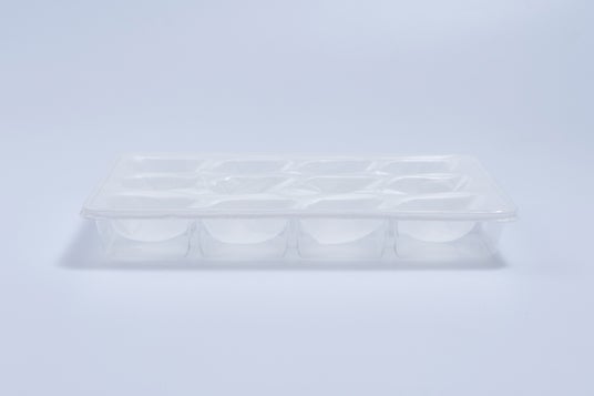 「ゆりかーご」は、いちごの形にフィットする特殊フィルムを使用した、宙吊り構造のいちごトレイ。