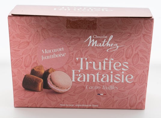 「マテス」は1934年にフランスで創業したメーカー。成城石井では、毎年秋冬シーズンに「プレーン」や「オレンジピール」のトリュフを販売し、ご好評をいただいております。今季は、「ラズベリーフレーバーマカロン」を新発売。封を開けていただくと、甘酸っぱいラズベリーの華やかな香りが広がります。くちどけの良いトリュフの中にカリカリっとしたマカロン生地の食感と、アーモンドの風味を感じていただけます。「マテス ファンタジートリュフ」は、この他「プレーン」「オレンジピール」「ピスタチオ」の3品もラインアップしています。