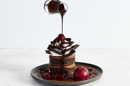 香り高く仕上げたココア生地に、ヴァローナ社のチョコレートを使ったリッチなチョコクリーム、ラズベリーソースとキルシュクリームを合わせた、ウィンターシーズン限定の贅沢な一皿。
