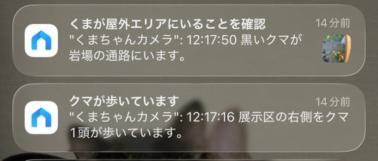 「黒いクマが敷地付近を歩いています」などの具体的なアラートが可能であることを確認