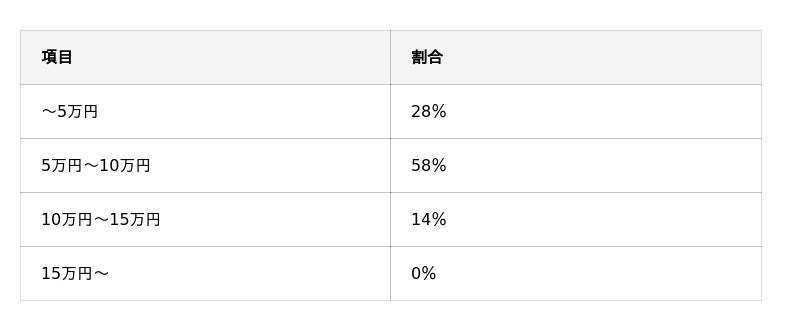また、「5万円以下」と「5万円~10万円」と答えた方を合わせると全体の86%を占めており、多くの場合10万円以内で受けられると考えられます。