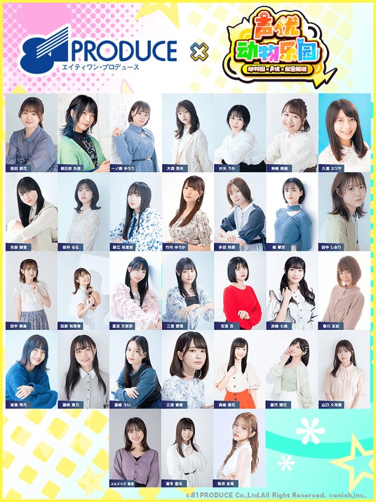 本プロジェクトには、81プロデュース所属の31名の声優が参加いたします。それぞれが個性豊かなキャラクターの声を担当し、ゲームの世界観を彩ります。今後、段階的に情報公開を行っていきますのでぜひ、皆さんの推しボイスを見つけてみてください!