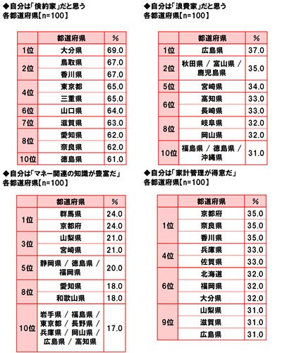 ◆“倹約家”1位は「大分県」、“浪費家”1位は「広島県」