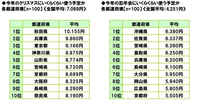 ・「秋田県」“今年のクリスマス予算”、“来年のお賽銭予算”、“来年のおせち料理予算”で1位