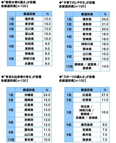◆有名な出身者の多さ自慢 1位「沖縄県」、スポーツの盛んさ自慢 「広島県」が5年連続1位