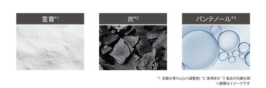 重曹*1 、炭*2 、パンテノール*3配合。しつこい毛穴の角栓をオフしてすっきりつるつる肌へ洗い上げます。