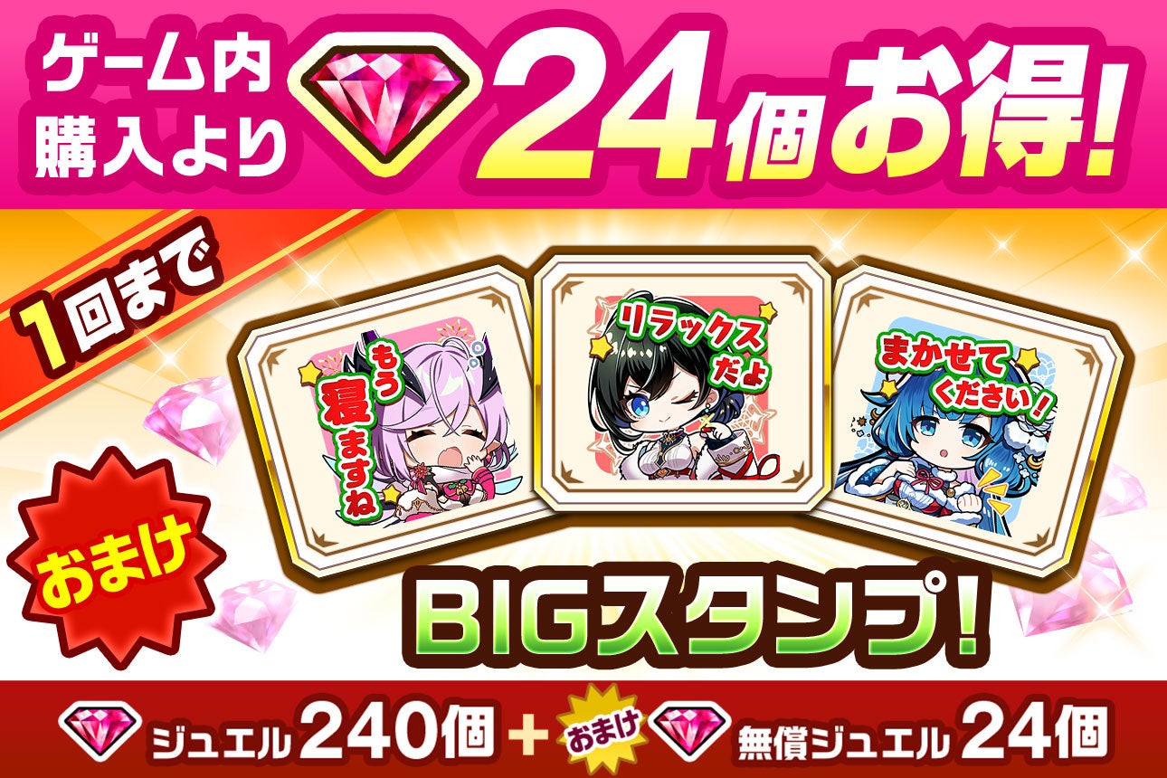 イベントの開催を記念して、『白猫』公式ストアでは「新イベントキャラ保証」が付いたお得な「プレミアムジュエルパック」や、通常サイズより大きいスタンプがついた「BIGスタンプ付きジュエルパック」なども販売しております。